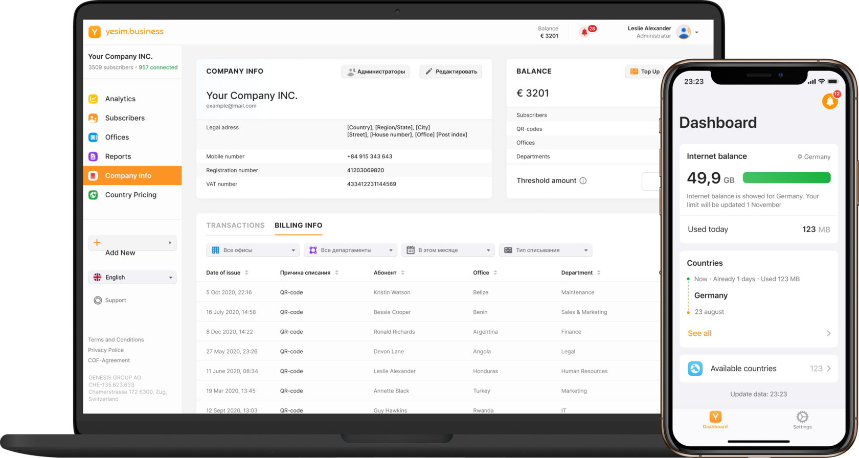 Yesim provides World Wide Same-Price Same-Service level mobile telephony communications using eSIM functionality in customers' devices.